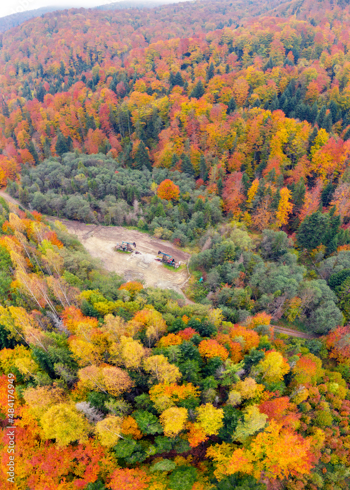 oil pump in the autumn mountains