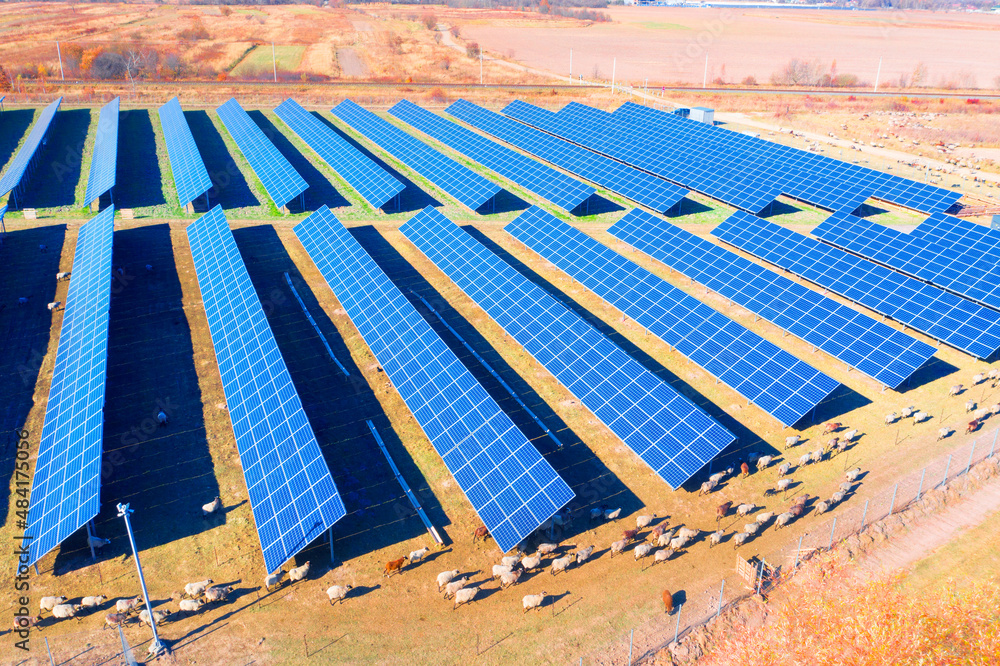 flock of sheep solar panels