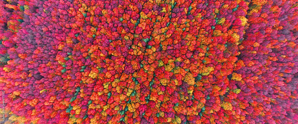 Autumn forest in the Carpathians, copter.