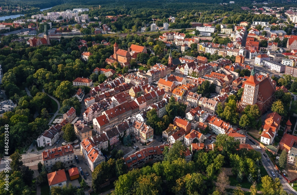 Summer aerial cityscape of Olsztyn (Poland) old town at sunset.
