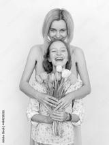 Daughter give mom flowers