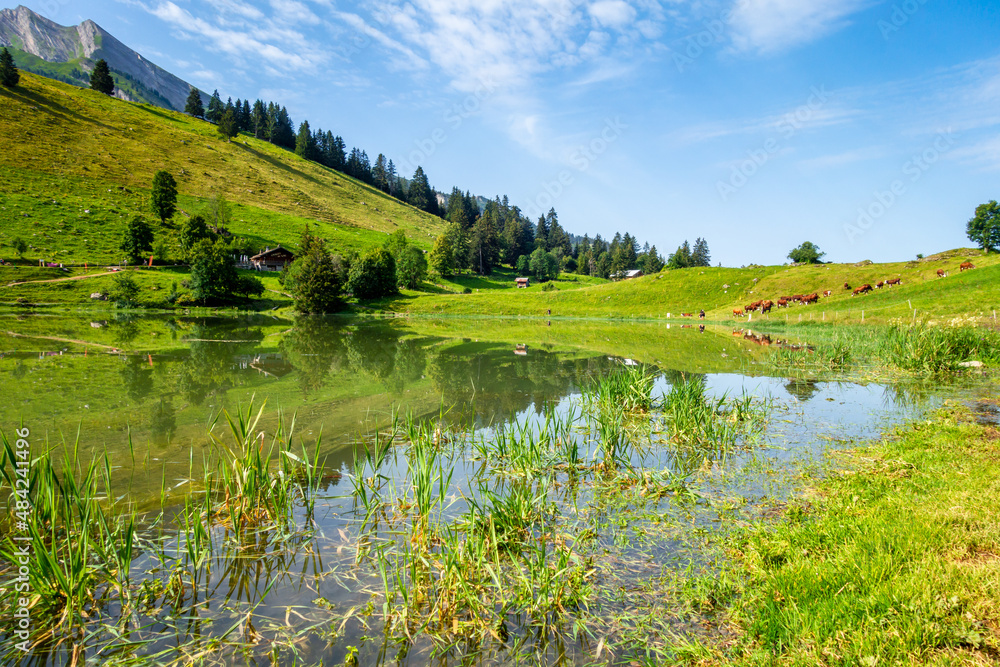 Lake of the Confins and Mountain landscape in La Clusaz, France