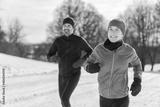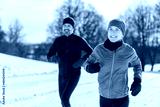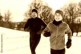 mature couple in the winter running together in nature