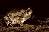 Banded bullfrog (Kaloula pulchra) closeup face on wood with black background, Kaloula pulchra toad on wood,