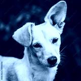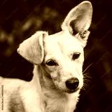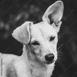 Square, portrait of a mixed breed puppy dog