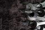 Wrench Spanner Chrome with rough background. Combination wrench. Open ended spanner. Professional tools background.