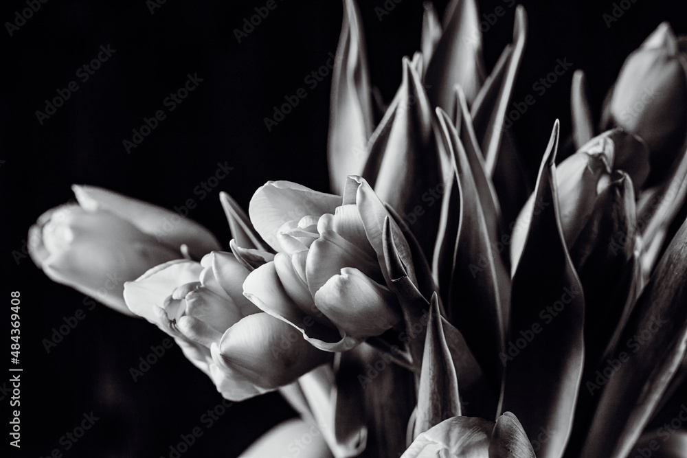 tulip flowers in black and white