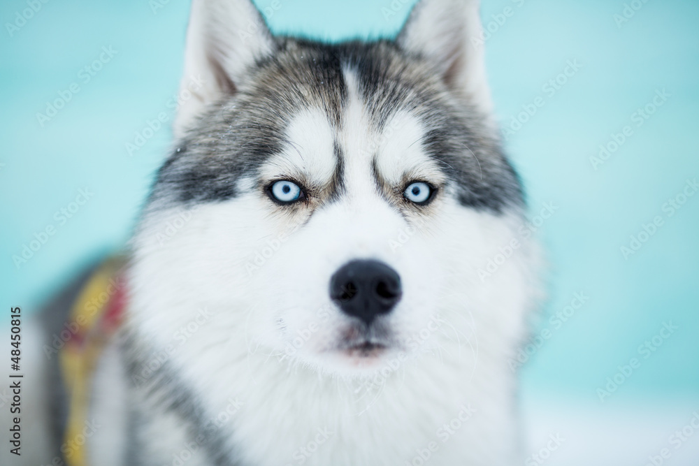 Siberian husky sled dog closeup portrait