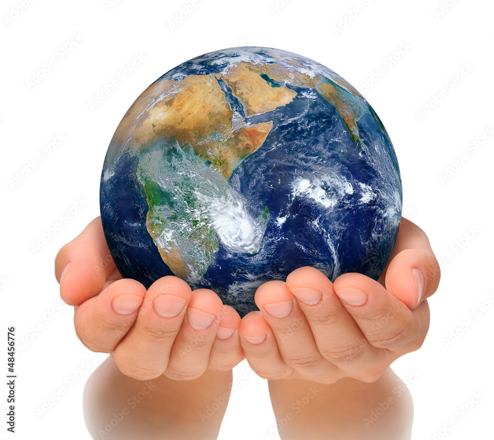 Hands of woman holding globe, Africa and Near East