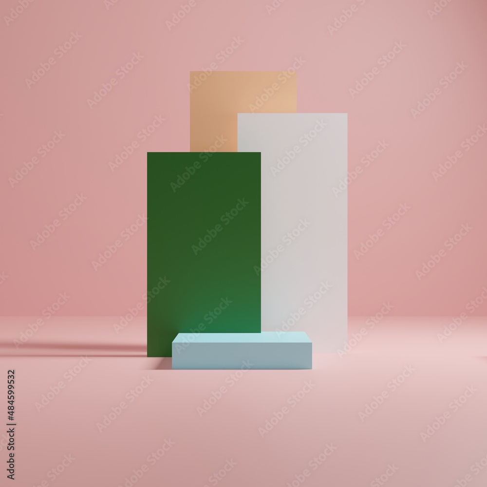 3d rendering illustration of background abstract pedestal board, art display mockup product decoration stand wallpaper