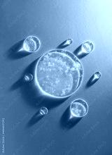 round transparent drop of clear gel serum on gold background