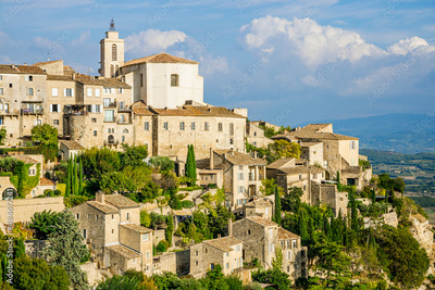 Saint-Firmin church in Gordes village in the Luberon valley during summer in Provence, France