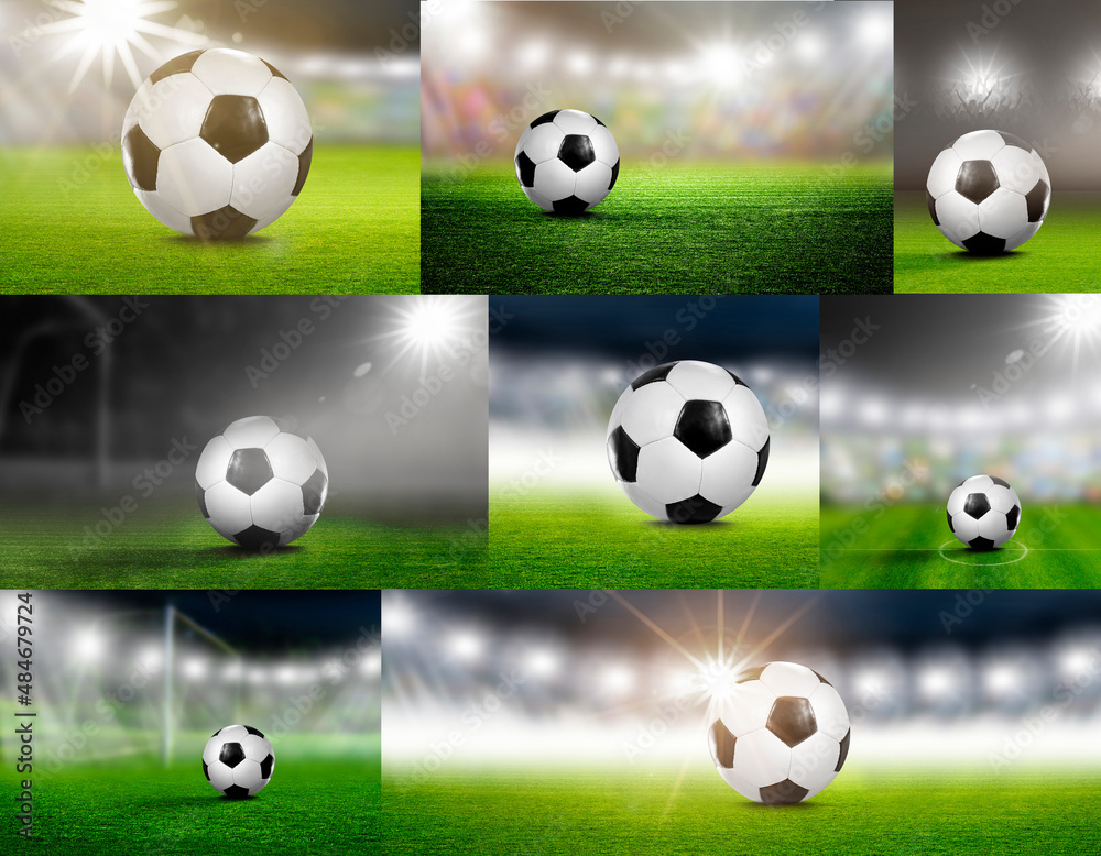 Verschieden Ansichten eines Soccer Fußballs im Stadion