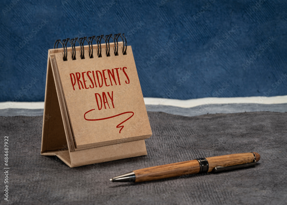 President's Day, the birthday of George Washington - handwriting in a spiral desktop calendar against abstract paper landscape, calendar concept
