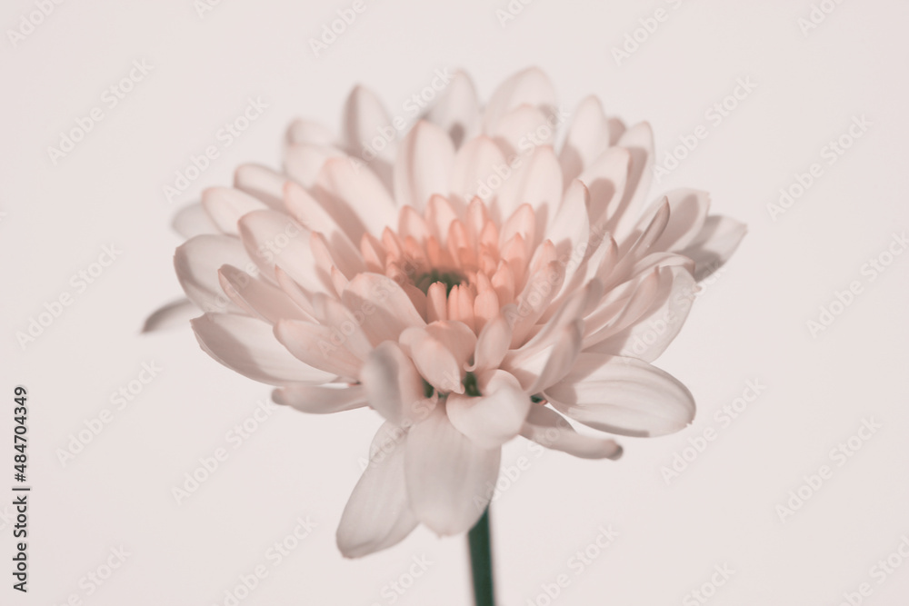 Soft focus chrysanthemums flower . Minimalist smoke still life. Light and shadow nature horizontal copy space background.