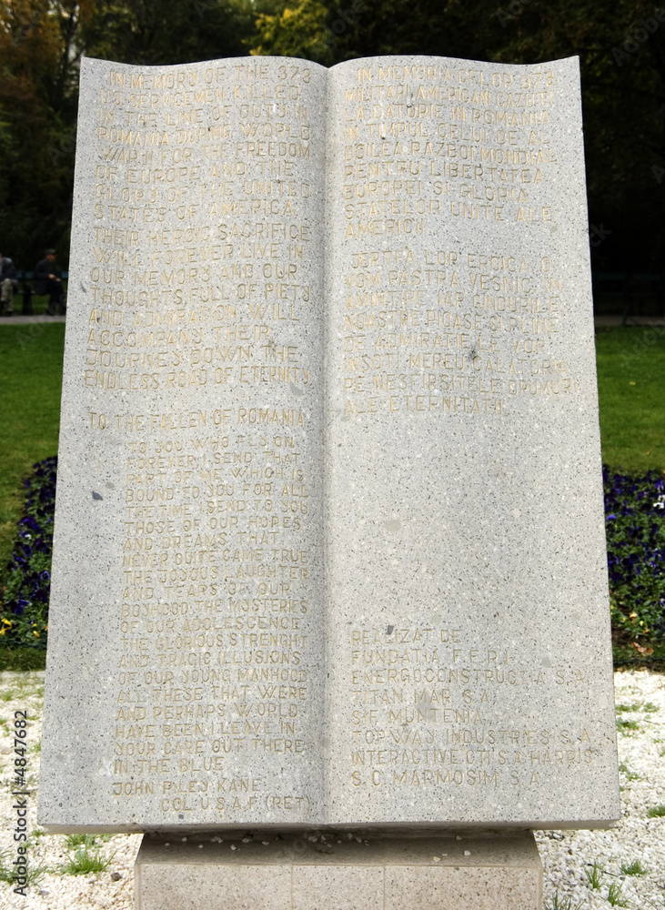 Memorial dedicated to the american soldiers, in Bucharest, Roman