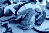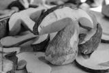 Boletus cross-section. Sliced boletus. Preparation of mushrooms for drying.