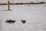 Portrait of a lekking Black Grouse, Tetrao tetrix, in snowy landscape in Czech republic