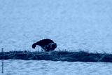 Portrait of a lekking Black Grouse, Tetrao tetrix, in snowy landscape in Czech republic