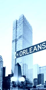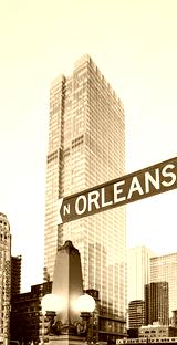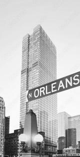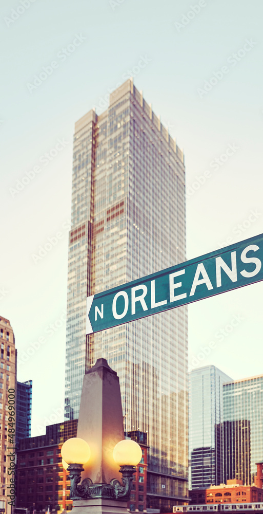 North Orleans Street sign, selective focus, color toning applied, Chicago, USA.