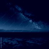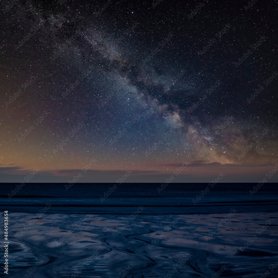 Digital composite image of Milky Way over Absolutely beautiful landscape images of Holywell Bay beach in Cornwall UK during golden hojur sunset in Spring