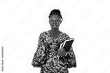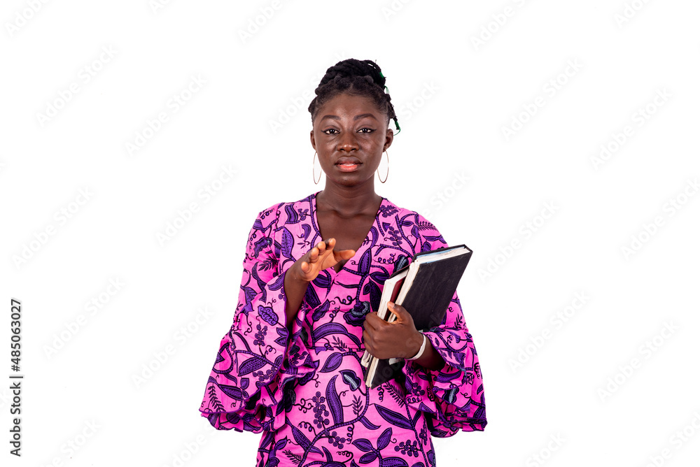 beautiful young businesswoman holding notebooks in hands.