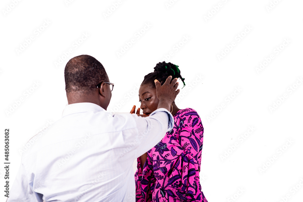angry boss hitting an employee in his office.