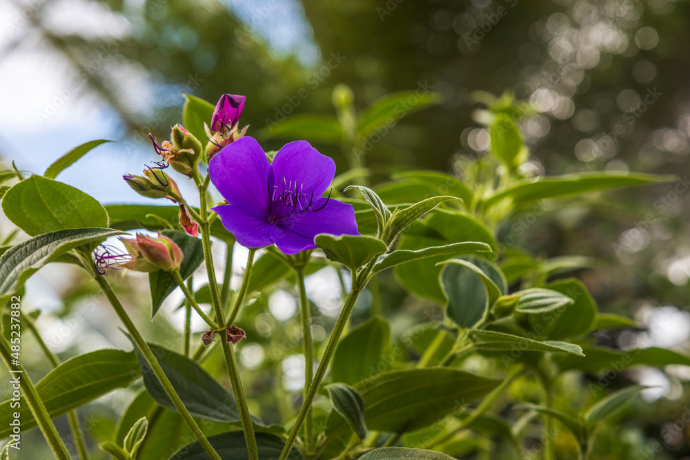 Close up view of tropical flowers Tibouchina urvilleana family Melastomataceae native to Brazil.