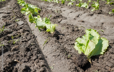 Close up picture of seedlings on a eco farm, selective focus.