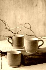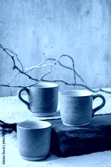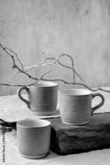 Set of empty craft ceramic coffee cups