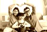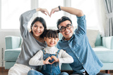 small asian family portrait at home