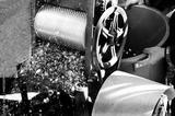 Wet process for ripe coffee wash in pulping machine by pulper. Harvested coffee beans ready to have their pulp removed are placed into a traditional hand turned machine.