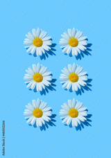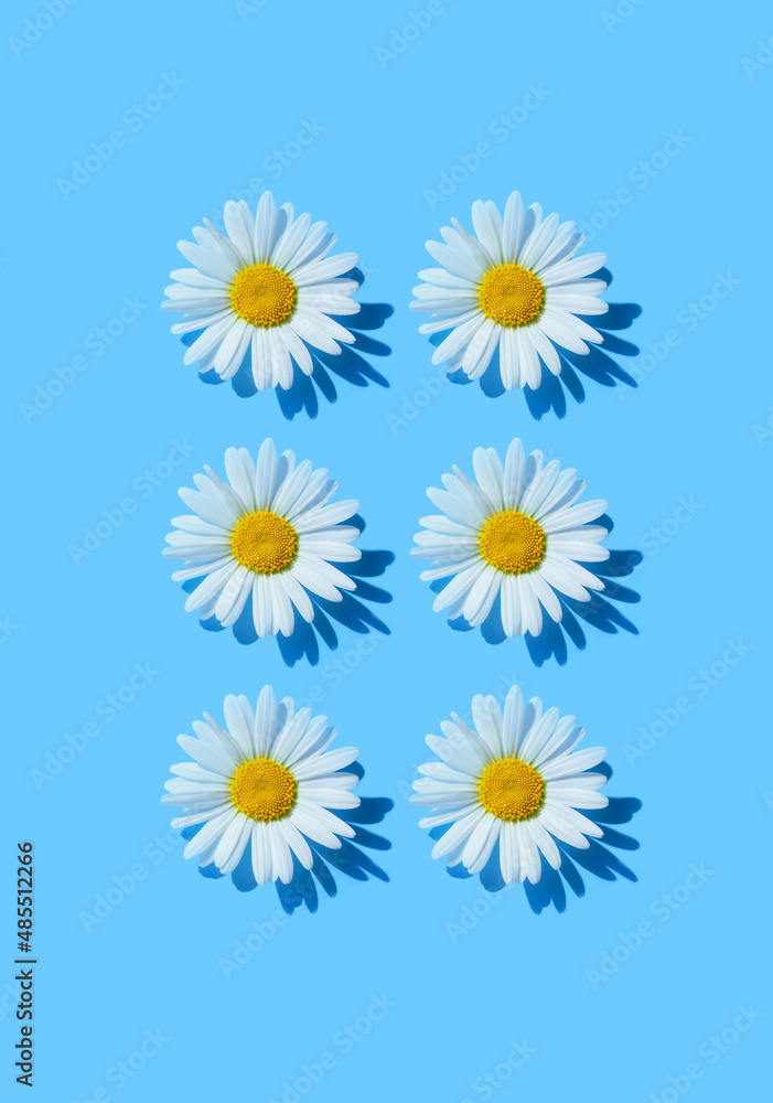 chamomile on blue background