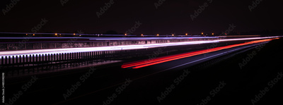 Night road lights. Lights of moving cars at night. long exposure red, blue, green