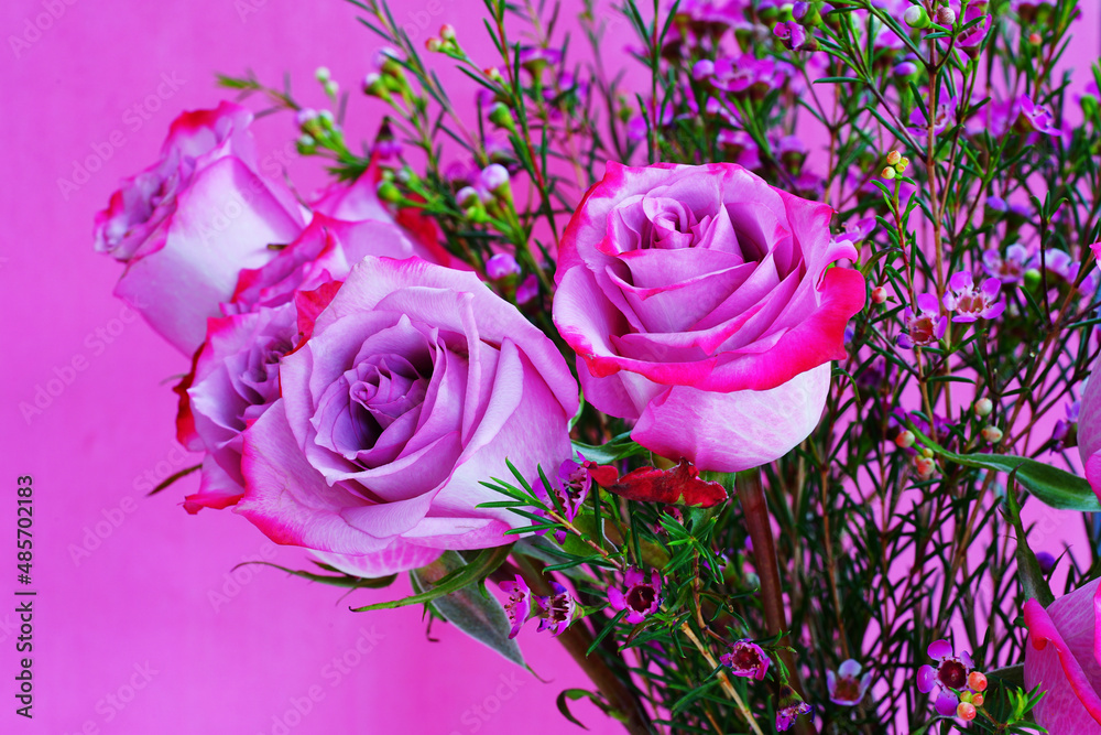 Large pink purple rose bouquet with wax flowers for Valentines Day