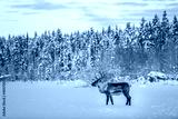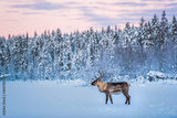 Reindeer at Christmas in the frozen cold snow covered winter landscape in Lapland in Finland