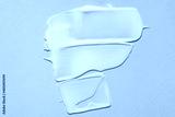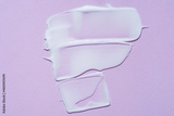 The texture of a facial skin care product. Smears of white cream with shimmer effect on a lilac background. Anti-aging anti-wrinkle care
