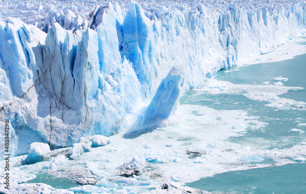 Glacial ice calving.