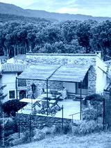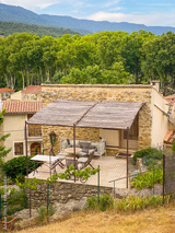 terrace of a gite rented by tourists during summer in the village of Cucuron in the Luberon valley in Provence, France