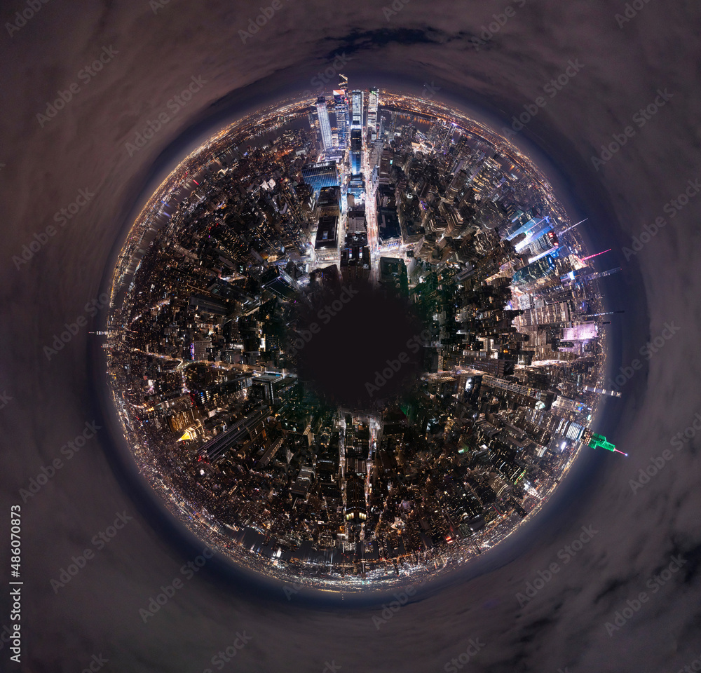 360 circular panorama of Manhattan at night