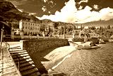 Como Lake. Idyllic beach and Villa Sola Cabiati in Tremezzo on Lake Como view