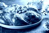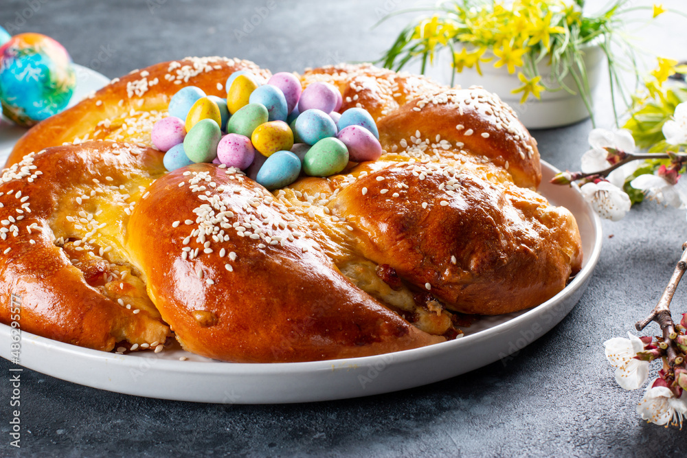 Tasty easter bread. Easter bread and eggs. Italian easter bread