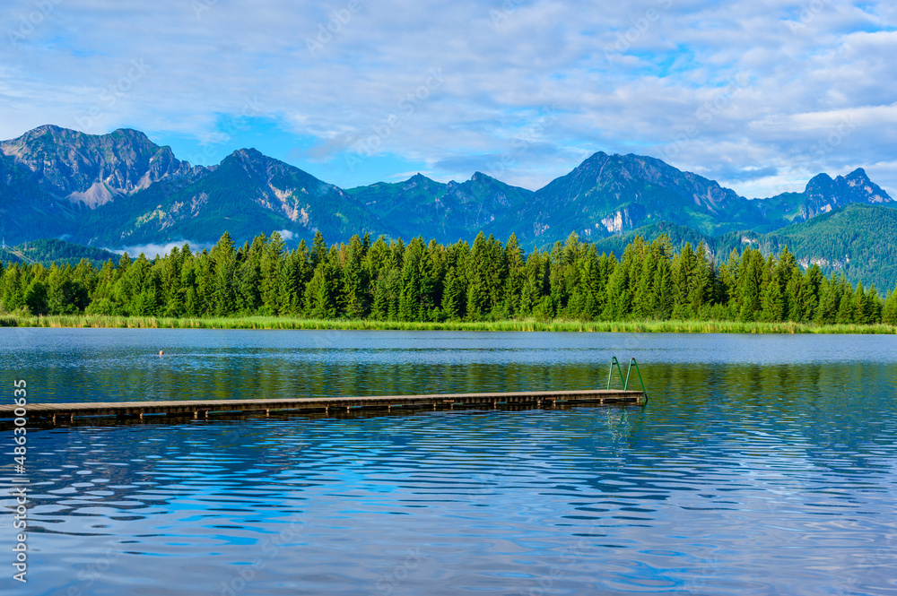 Lake Hopfensee near Fuessen - View of Allgaeu Alps, Bavaria, Germany - paradise travel destination