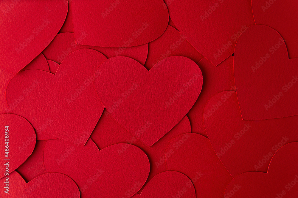 Paper cut red hearts shape background with copy space. Concept image. Valentine's day, mother's day, birthday greeting cards, invitation, celebration