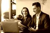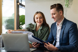 Meeting and discussion concept.business people communicating in office.Mature businessman discuss information with a colleague in a modern business lounge high up in an office tower.
