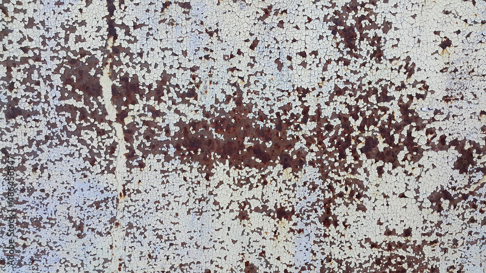 Texture of old metal rusty wall with cracked paint