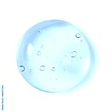 Glycerin gel texture. Blue serum toner drop isolated on white background. Liquid gel sphere with bubbles macro