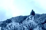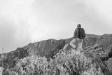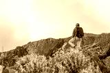 Hiker with backpack in the mountains