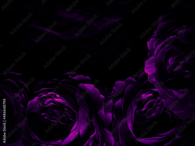 Beautiful abstract blue and purple flowers on black background, black flower frame, dark leaves texture, purple background, purple background, flowers for Christmas and valentine celebrations