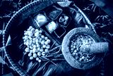 Sambal Pincuk Gooseberry pickle 'Buah Cermai' with ingredients, also known as also known as Otaheite Gooseberry spicy sambal. Selective focus.